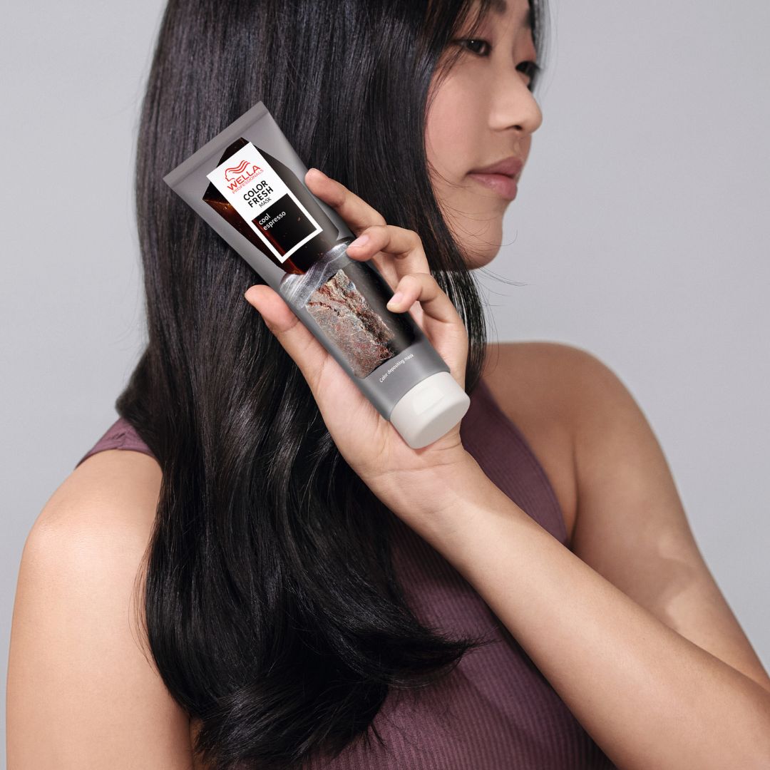 Odstín Cool Espresso je vhodný pro předem lehce zesvětlené, popř. barvené hnědé vlasy na dodání studeného sytého hnědého odlesku, nicméně svou krásu ukáže i na tmavších odstínech vlasů – hloubka tónu 6/, 5/, 4/, 3/.