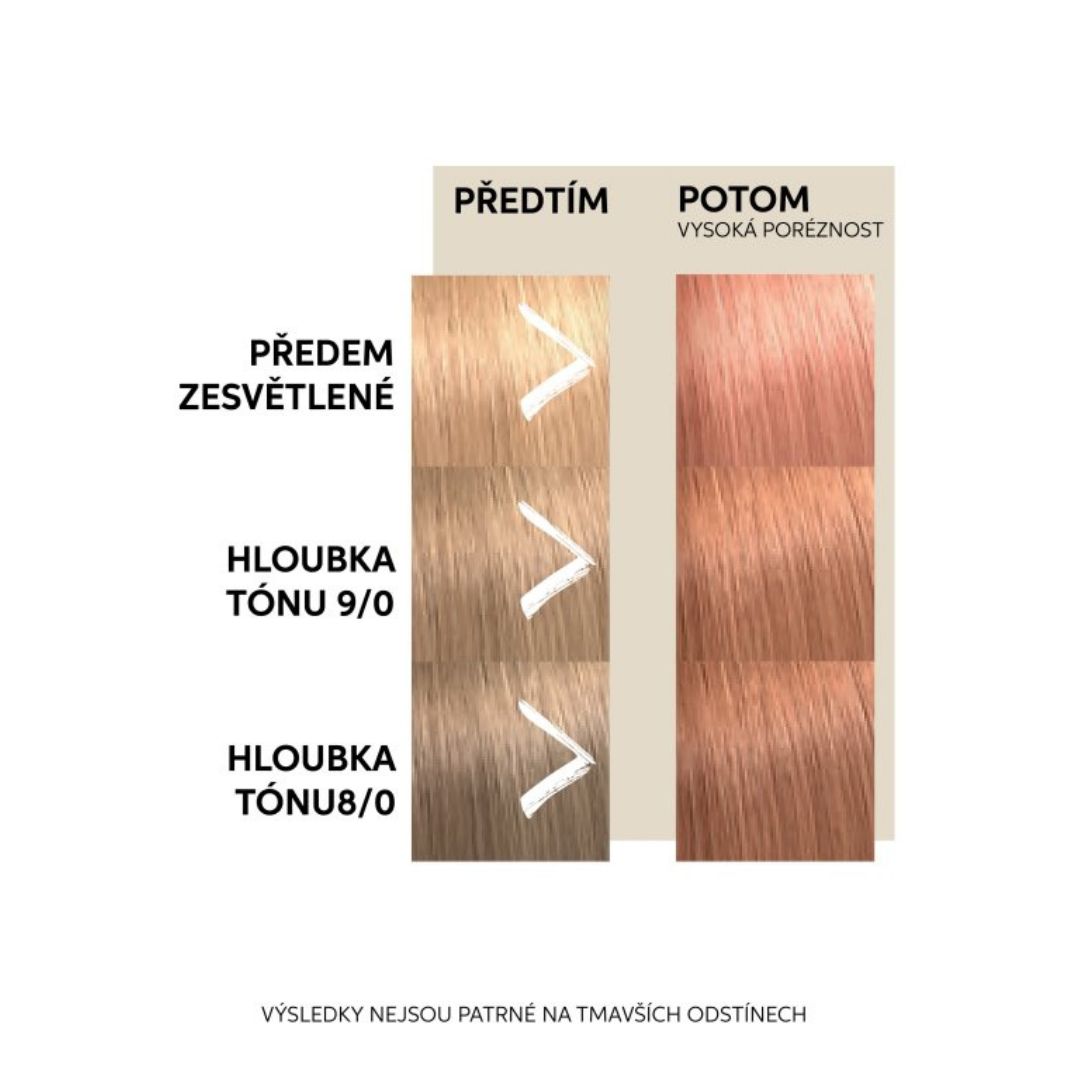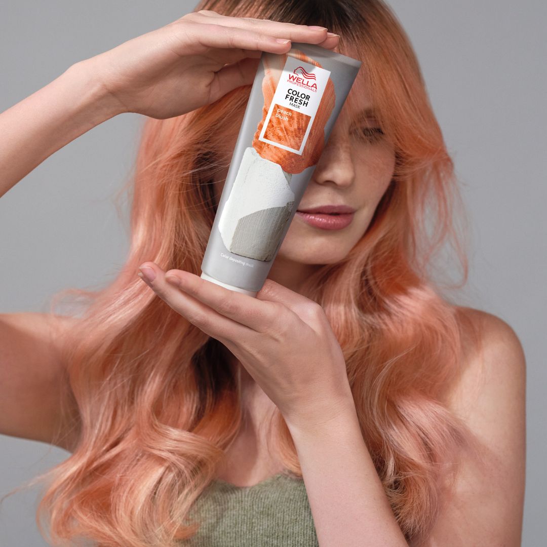Šťavnatý odstín čerstvých broskví! Tato maska je vhodná do středně blond přírodních a zesvětlovaných vlasů. Projeví se ale i na tmavších odstínech vlasů.