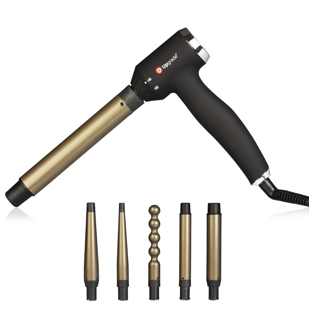 Kulma Upgrade má výjimečný ergonomický tvar do úhlu 90°, rukojeť z měkkého materiálu pro pevný úchop a nízkou hmotnost. Maximální komfort při práci je tak zaručen. Skládá se z 5 snadno vyměnitelných titanových hlav, které dokážou rozvádět teplo rovnoměrně, proto jsou i výsledné vlny precizní, lesklé a pevné po dlouhou dobu.